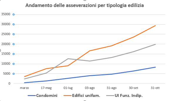 Le asseverazioni delle tre tipologie edilizie mostrano da agosto a oggi un comportamento sostanzialmente simile.