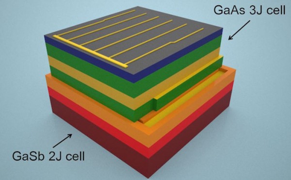I materiali innovativi utilizzati sono l’antimoniuro di gallio (GaSb), normalmente utilizzato in applicazioni laser, e l’arseniuro di gallio (GaAs). I due materiali sembrano accoppiarsi perfettamente per questi utilizzi dato che l’antimoniuro cattura lunghezze d’onda molto elevate mentre l’arseniuro assorbe lunghezze d’onda più ridotte; la loro combinazione porta così alla raccolta di un’amplissima porzione di spettro solare.
