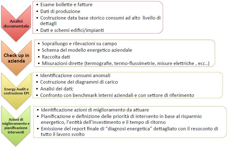 Il team di EcoBioService adotta uno schema ben strutturato e preciso nella conduzione delle diagnosi energetiche, in modo da fornire un’analisi dettagliata e mirata ad eliminare gli sprechi di energia: